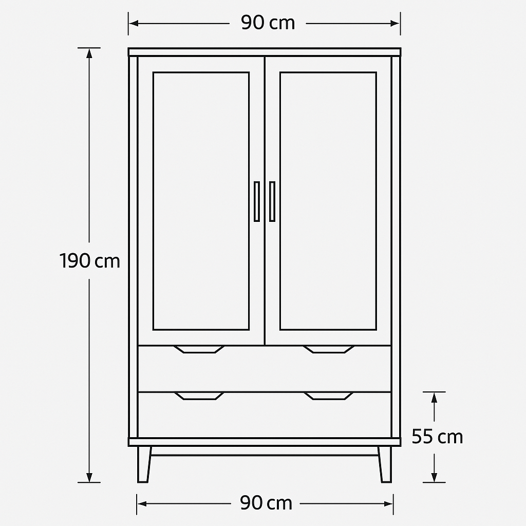 Deze kledingkast is een stevige en stijlvolle oplossing voor het netjes opbergen van kleding en accessoires. De kast is volledig gemaakt van massief hout, wat zorgt voor een warme, natuurlijke uitstraling en een lange levensduur. Dankzij het tijdloze ontwerp past de kast goed in zowel moderne als klassieke interieurs.